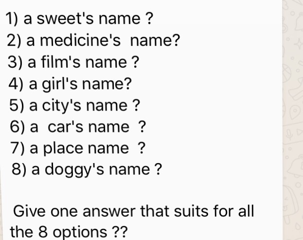 Solved A Sweet S Name A Medicine S Name A Film S Name