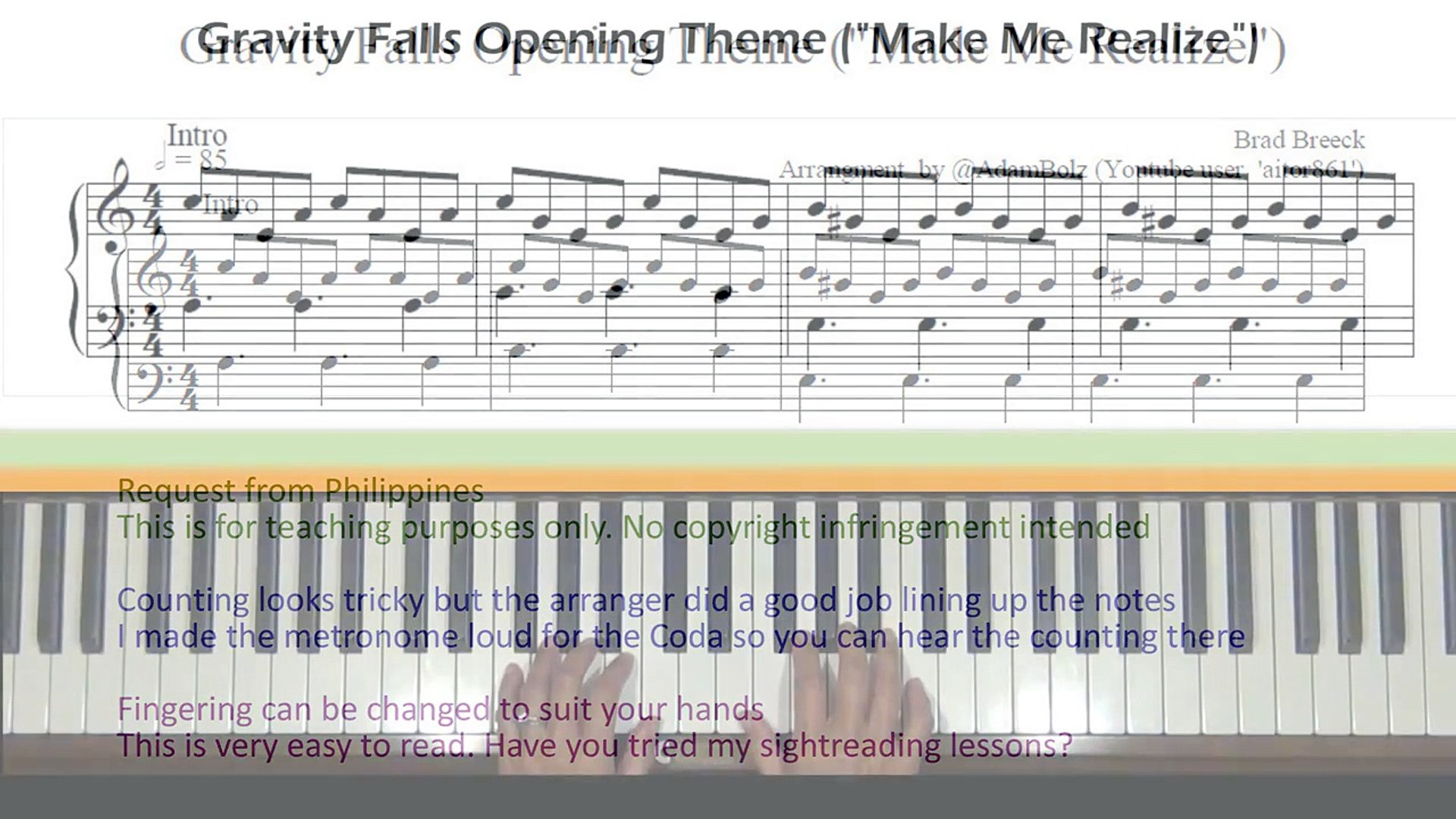 Piano Tutorial Easy Gravity Falls Main Title Advanced Sheet