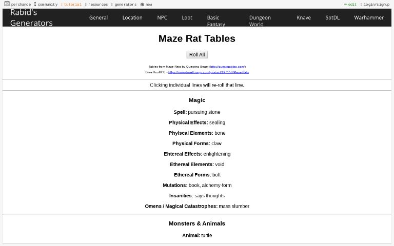 Maze Rat Tables Perchance Org
