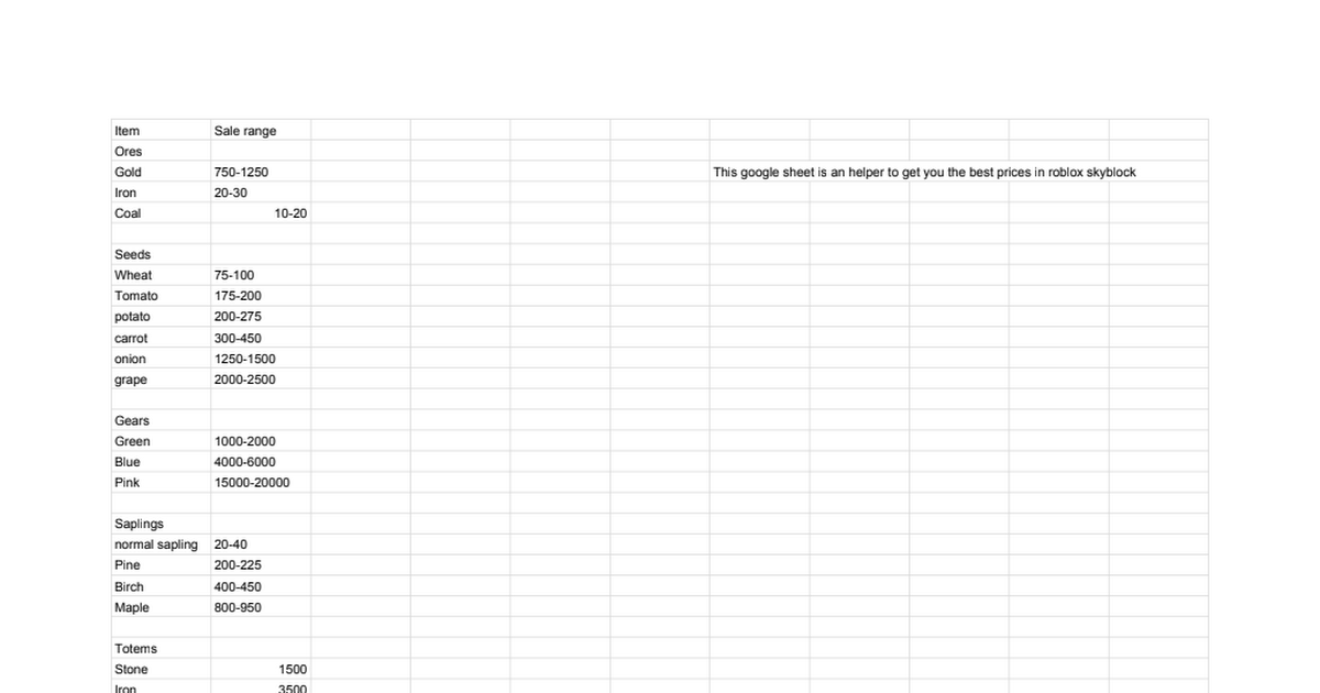 Roblox Skyblock Value List Youtube