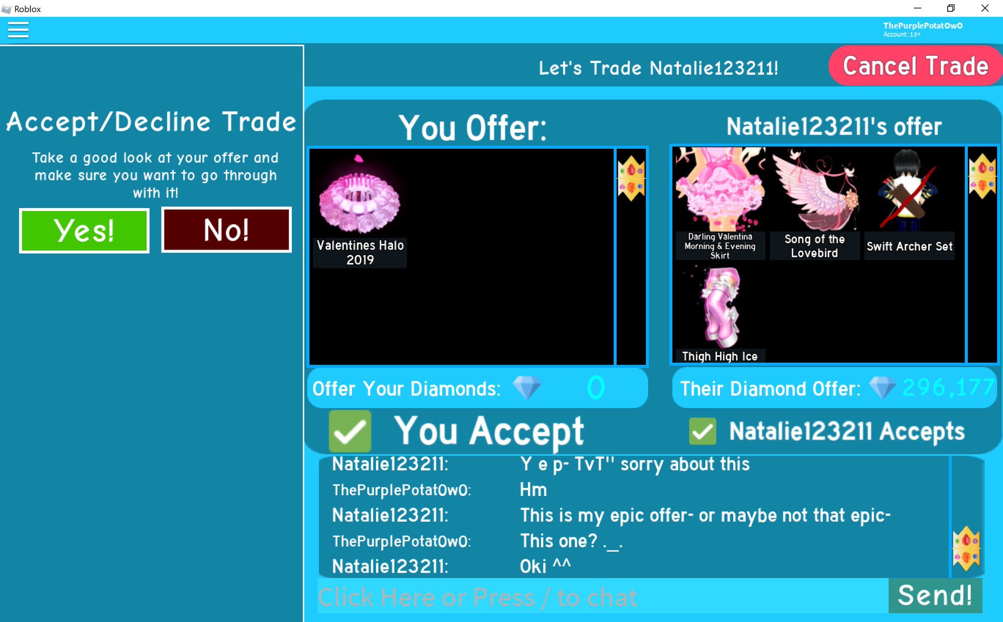 Dont Ask To Trade Just Send It Accepting Op S Roblox